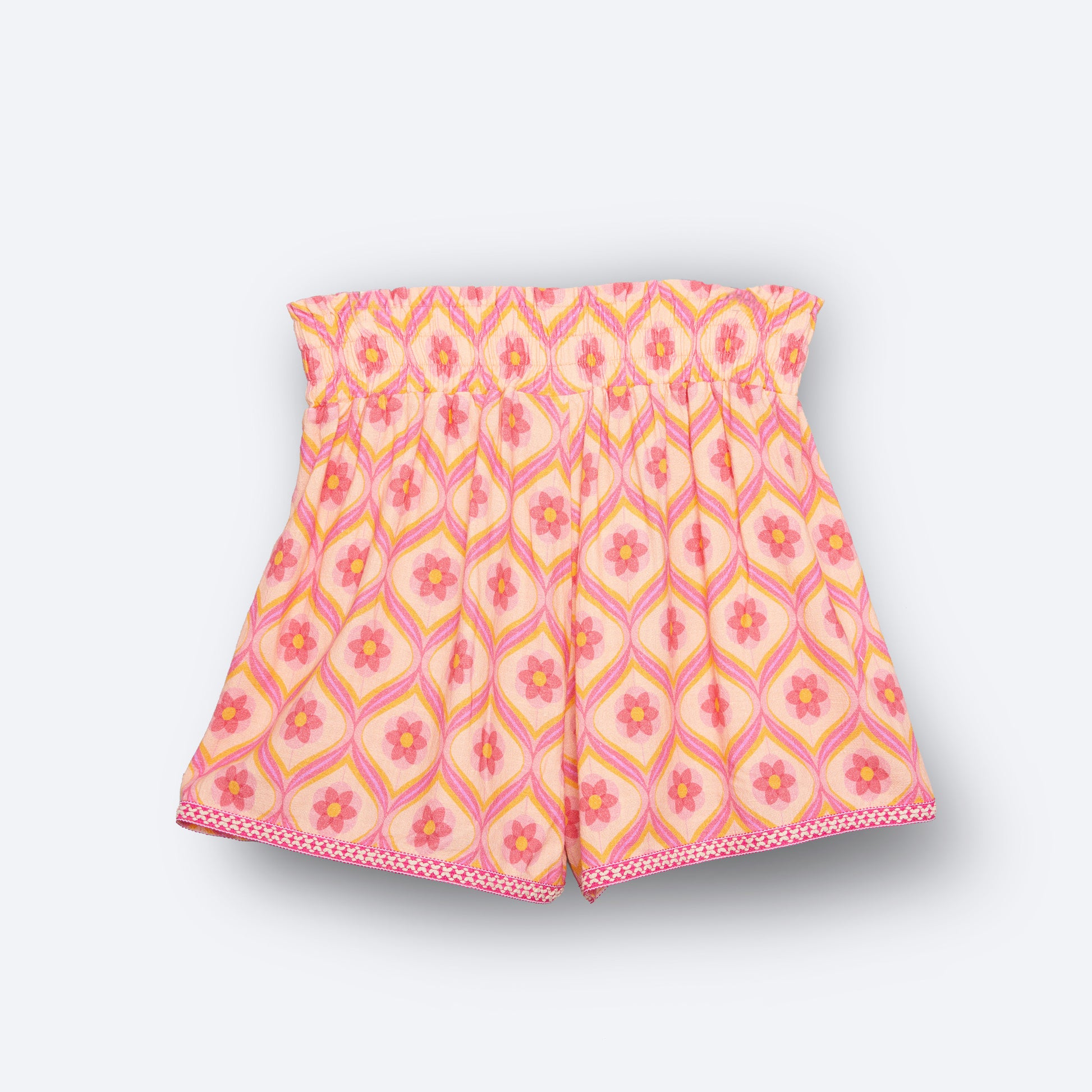 These pretty pull-on shorts will make you want to keep wearingyour sunny summer staples long past Labor Day. In our gorgeous geo, they feature a comfy smocked waist and a flattering fit. Pair them with the matching top for a cute summer set — plus look for coordinating styles for girl and boy.
