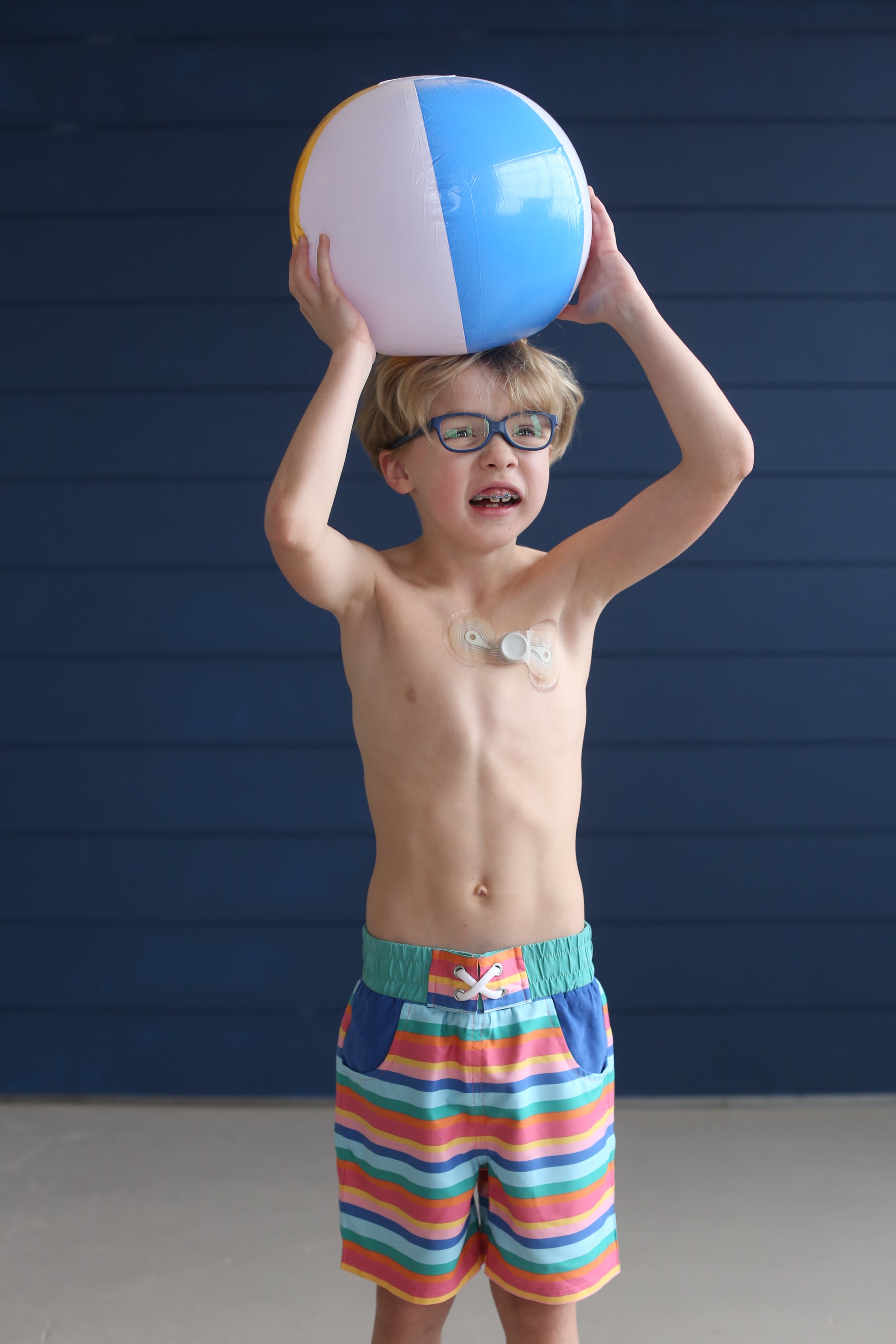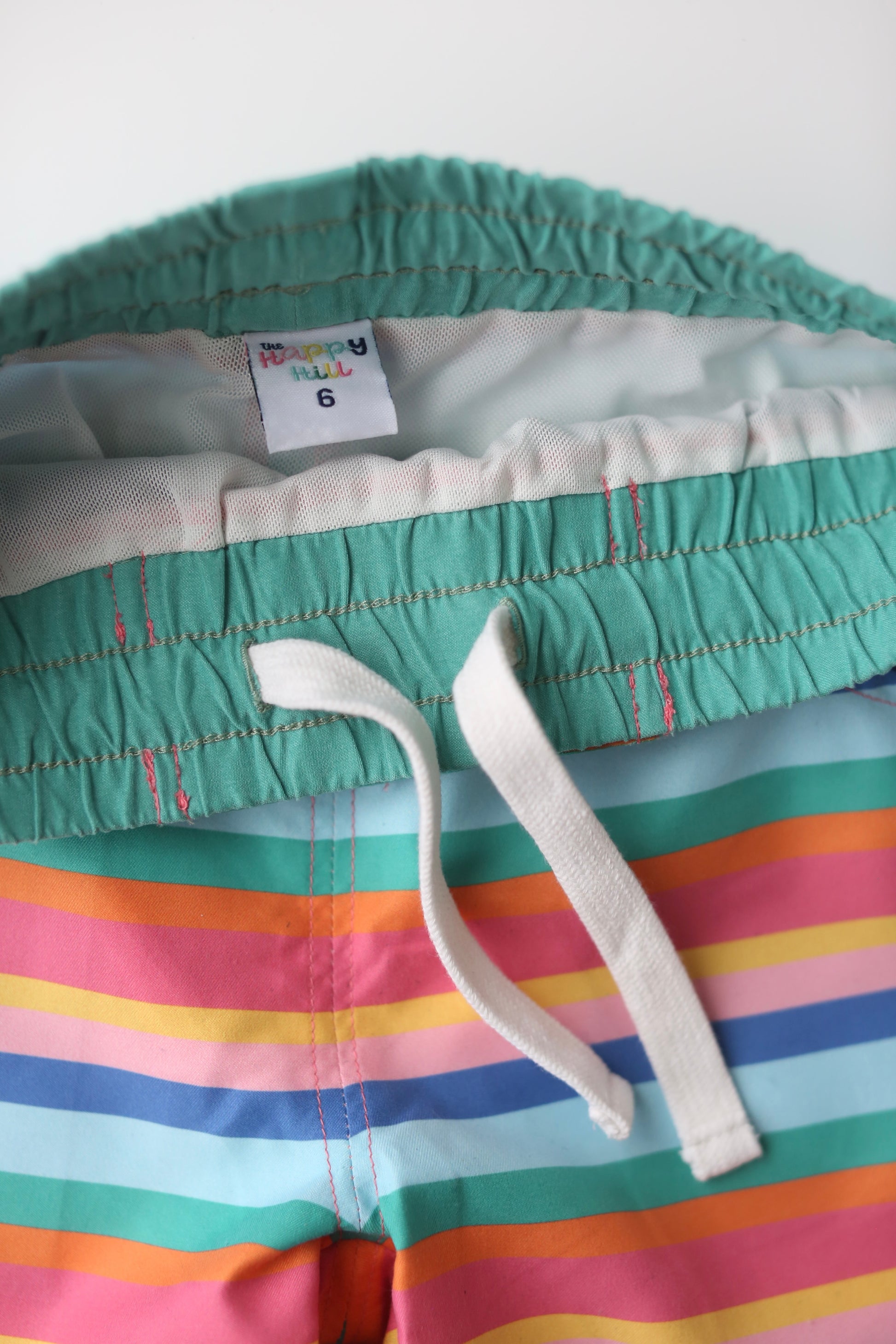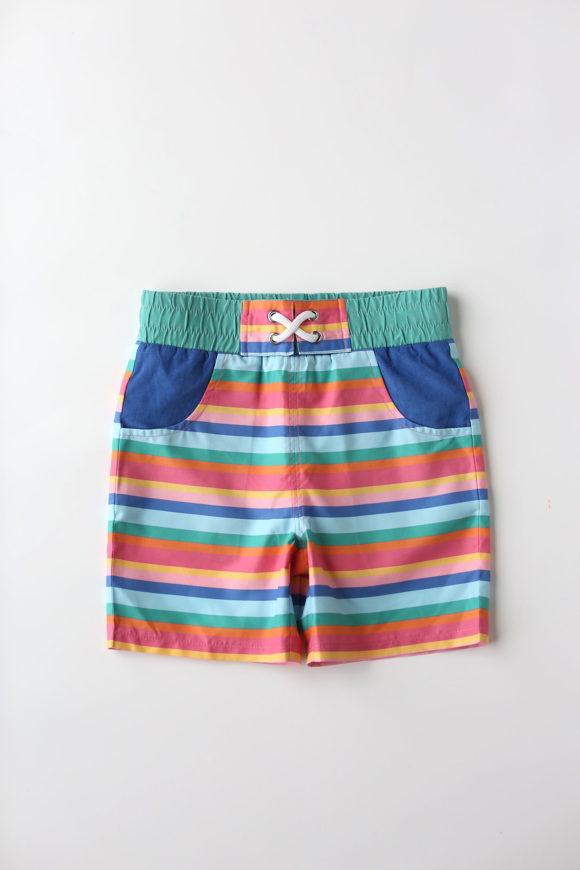 Introducing our boys Tropical Trunks designed to make a splash with style and functionality. Crafted with the energetic spirit of young boys in mind, these swim trunks feature our rainbow stripe pattern that adds a pop of color to any poolside or beach outing.